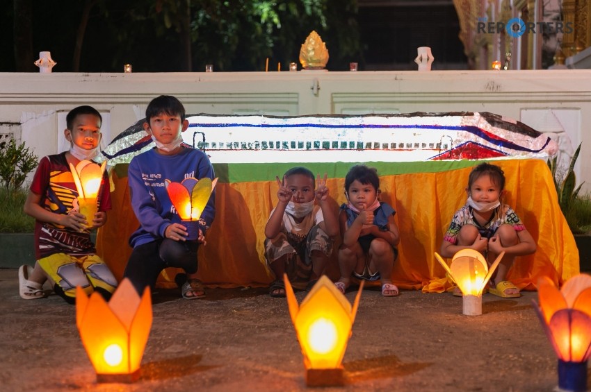 ภาพ: แฟ้มภาพซินหัว เด็กถ่ายรูปกับโคมไฟเนื่องในวันออกพรรษาที่วัดในนครหลวงเวียงจันทน์ของลาว วันที่ 21 ต.ค. 2564
