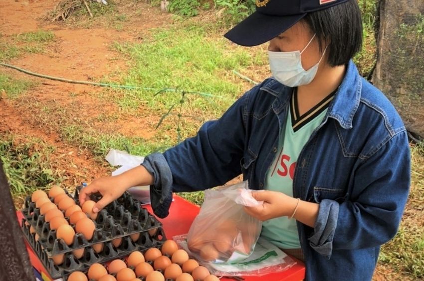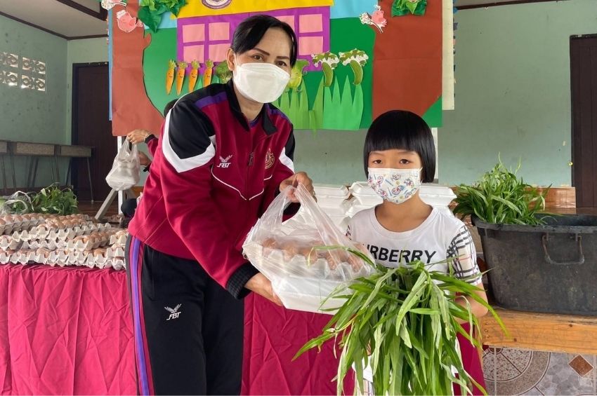 แม้ช่วงโควิดที่โรงเรียนต้องปรับเปลี่ยนการสอนในรูปแบบ Onhand ครูต้องส่งใบงานติดตามการบ้านนักเรียนที่บ้าน ก็ยังจัดปรุงอาหารทั้งข้าวกะเพราไข่เจียว ไข่ต้อม รวมถึงไข่สดที่จะนำไปมอบให้กับเด็กๆ คนละ 6-10 ฟอง แล้วแต่รอบวันอังคาร หรือวันพฤหัสบดี ขณะเดียวกันก็ยังจำหน่ายผลผลิตผ่านสหกรณ์ให้กับพ่อแม่ผู้ปกครอง ในราคาเพียงแผงละ 80 บาท ซึ่งเป็นราคาต่ำกว่าท้องตลาดมาก เพื่อให้ทั้งนักเรียนและผู้ปกครองมีโปรตีนคุณภาพดีจากไข่ไก่ได้บริโภค
