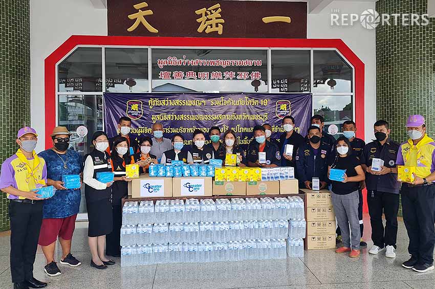 กระทรวงแรงงาน มอบชุดอุปกรณ์แก่บุคลากรทางการแพทย์และกู้ภัยสว่างสรรเพชญธรรมสถานป้องกันโควิด-19 จ.เพชรบุรี