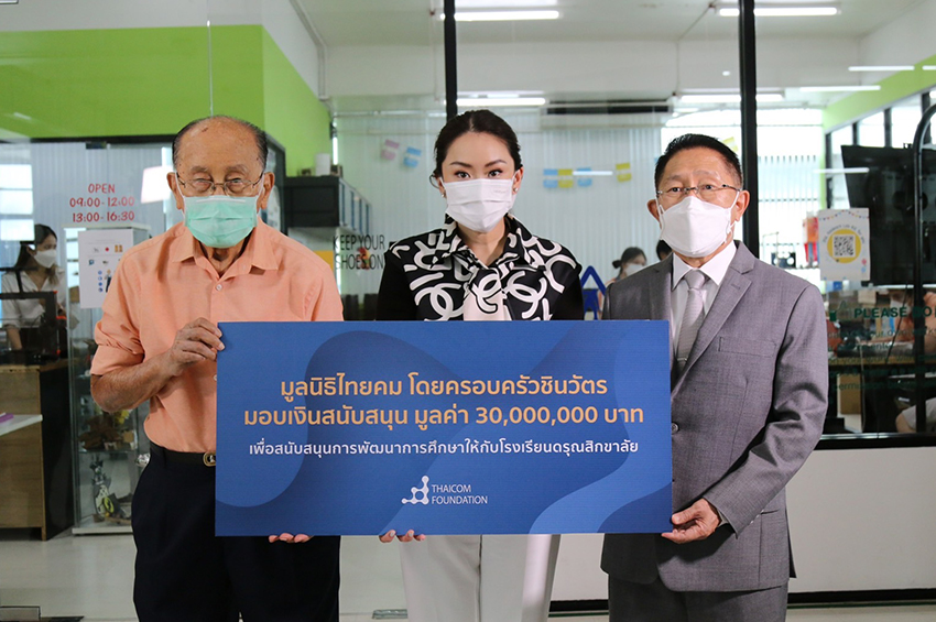 วันนี้ (18 ก.พ. 65) น.ส.แพทองธาร ชินวัตรและคุณบรรณพจน์ ดามาพงศ์ ผู้บริหารมูลนิธิไทยคม ได้มอบเงินสนับสนุนจํานวน 30 ล้านบาท แก่โรงเรียนดรุณสิกขาลัย เพื่อสนับสนุนการพัฒนาการศึกษาและพัฒนาเยาวชนไทยก้าวสู่การเป็นพลเมืองโลก โดยมีนายพารณ อิศรเสนา ณ อยุธยา ผู้อํานวยการใหญ่และผู้ก่อตั้งโรงเรียนดรุณสิกขาลัย เป็นผู้รับมอบ
