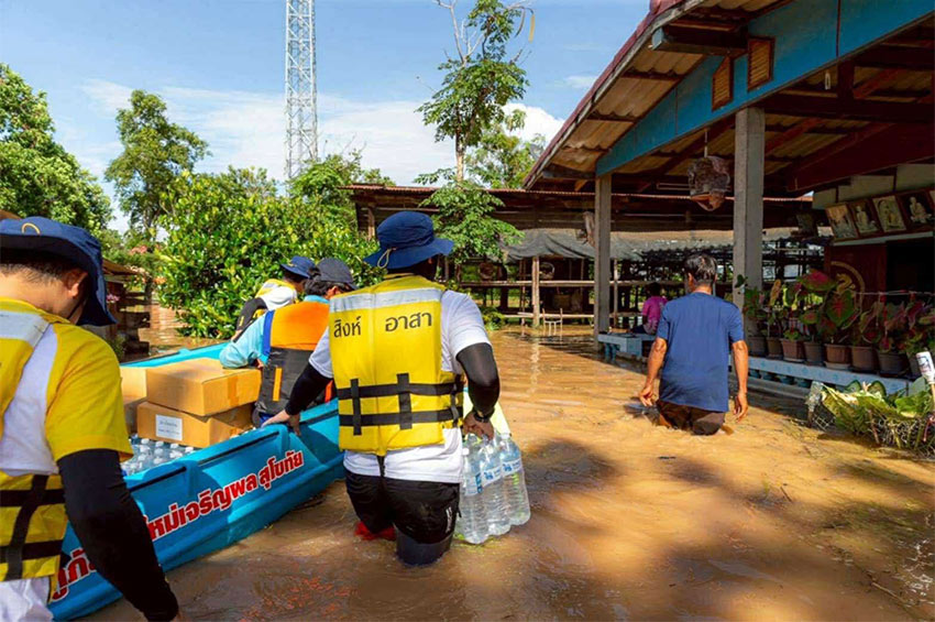 สิงห์อาสา ร่วมกับ เครือข่ายอาสากู้ภัยดุสิต, อาสาสมัครมูลนิธิ มิราเคิล ออฟไลฟ์ และตัวแทนจำหน่าย บจก.สิงห์สุโขทัย จำกัด เร่งลงพื้นที่ช่วยเหลือผู้ประสบภัยน้ำท่วม จ.สุโขทัยอย่างต่อเนื่อง เพื่อให้ความช่วยเหลือผู้ประสบภัยน้ำท่วมจากอิทธิพลของพายุ “วิภา” ที่ส่งผลกระทบหลายจังหวัด ทำให้มวลน้ำจากแม่น้ำยมไหลเข้าท่วมอ.สวรรคโลก อ.ศรีสำโรง และอ.เมือง โดยสถานการณ์ในพื้นที่ อ.ศรีสำโรง จ.สุโขทัย พบว่าบ้านเรือนเสียหายกว่า 380 หลังคาเรือน หลายจุดน้ำท่วมสูง 2-3 เมตร แม้บางพื้นที่ระดับน้ำจะลดลงบ้างแล้ว แต่ยังต้องเฝ้าติดตามสถานการณ์อย่างใกล้ชิด