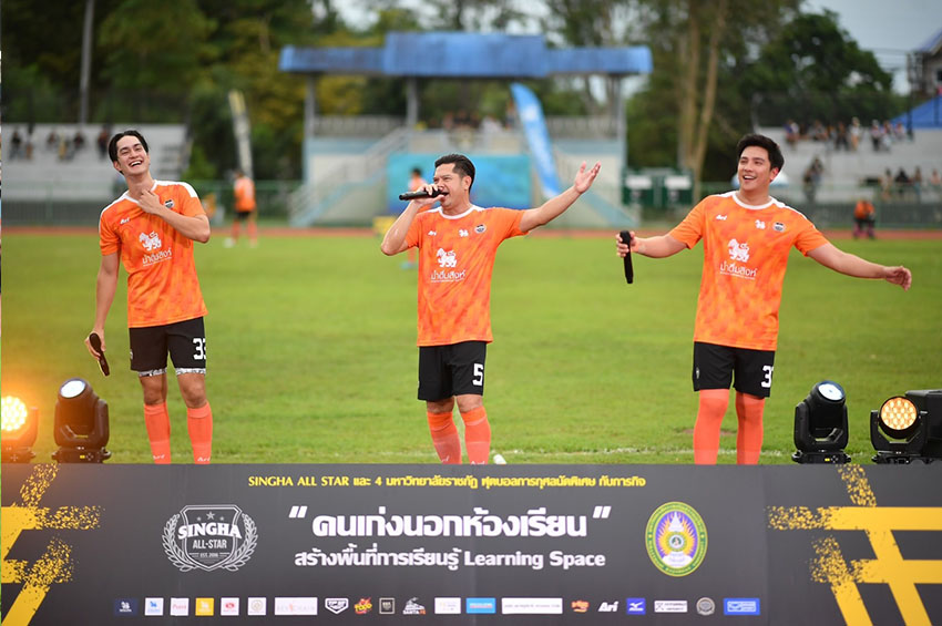 สนาม 3 สุดมันส์ กับ ฟุตบอลนัดพิเศษ ทีม SINGHA ALL STAR ฟาดเเข้ง กับ ทีม มหาวิทยาลัยราชภัฏสุราษฎร์ธานีนำเงินรายได้ ปั้นโครงการ คนเก่งนอกห้องเรียน เพื่อสร้าง learning space พื้นที่เเห่งการเรียนรู้ให้กับโรงเรียนใน 4 จังหวัด