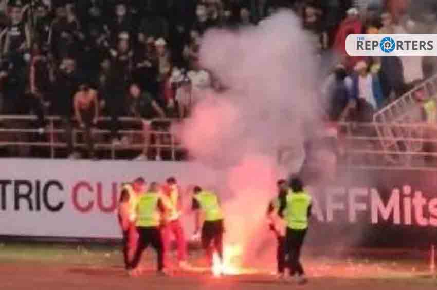 วันนี้ (13 ม.ค. 66) ที่ สถานีตำรวจภูธรคลองหลวง ตำรวจภูธรจังหวัดปทุมธานี ผู้สื่อข่าวรายงานว่า ร.ต.ท.วรัญชัย ยิ่งสุข รอง สว.(สอบสวน) ได้รับแจ้งว่าวันนี้ (13 ม.ค. 66) สมาคมกีฬาฟุตบอลแห่งประเทศไทยฯ โดย นายธีรภัทร์ วนิชาชีวะ ผู้รับมอบอำนาจเข้าร้องทุกข์กรณีที่สมามาคมฯ ได้จัดการแข่งขันกีฬาฟุตบอล รายการ AFF MITSUBISHI ELECTRIC CUP 2022 ระหว่าง ทีมชาติไทย กับ ทีมชาติ ฟิลิปปินส์ เมื่อวันที่ 26 ธันวาคม 2565 และวันที่ 10 มกราคม 2566 ระหว่าง ทีมชาติไทย กับ ทีมชาติมาเลเชีย ตามที่ได้รับมอบหมายจากสหพันธ์ฟุตบอลอาเซียน โดยทั้งสองครั้งจัดขึ้นที่สนามธรรมศาสตร์ สเตเดี้ยม ซึ่งอยู่ในท้องที่ สถานีตำรวจภูธรคลองหลวงนั้น ได้ปรากฎเหตุการณ์มีผู้เข้าชมกีฬาฟุตบอลรายการดังกล่าวได้จุดพลุแฟลร์ เกิดระเบิด และเพลิงไหม้แก่วัตถุจนน่าจะเป็นอันตรายแก่บุคคลอื่นหรือทรัพย์ของผู้อื่น