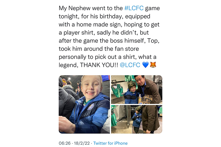 แฟนบอลเลสเตอร์ประทับใจ ต๊อบ อัยยวัฒน์ ใส่ใจแฟนบอลตัวน้อย
