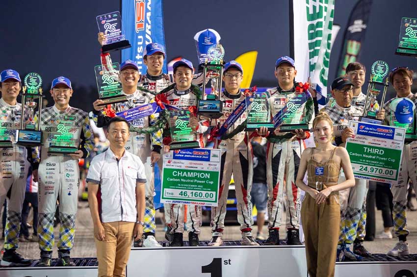 ‘Toyota Gazoo Racing Team Thailand’ ทีมแข่งรถดีกรีแชมป์โลกมาราธอน 3 สมัยในรายการ 24 ชม.นูร์เบอร์กริง เยอรมนี ภายใต้การสนับสนุนของบริษัท โตโยต้า มอเตอร์ ประเทศไทย จำกัด สร้างประวัติศาสตร์ผนึกกำลัง “ORC ROOKIE Racing” ทีมแข่งรถเพื่อการพัฒนายานยนต์โดย มร.อากิโอะ โตโยดะ กรรมการผู้จัดการใหญ่ บริษัท โตโยต้า มอเตอร์ คอร์ปอเรชั่น ประเทศญี่ปุ่น นำรถ e-fuel และรถต้นแบบขับเคลื่อนด้วยพลังงานไฮโดรเจนและใช้เชื้อเพลิงซึ่งมีความเป็นกลางทางคาร์บอน ลงสนามรายการมาราธอนทางเรียบสุดโหด 25 ชม. “IDEMITSU 1500 SUPER ENDURANCE 2022” คว้าอันดับ 1 รุ่น SP-Q สร้างสถิติ Best Lap ต่อรอบสูงสุด 1:50.691 นาที ในระหว่างวันที่ 17-18 ธันวาคม 2565 ณ สนามช้าง อินเตอร์เนชั่นแนล เซอร์กิต จังหวัดบุรีรัมย์
