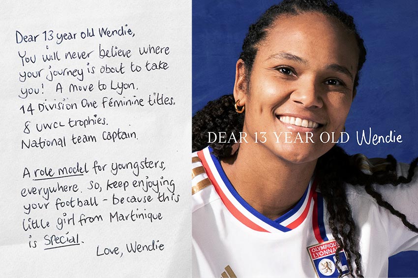 เวนดี เรย์นาร์ด นักเตะกองหลังของทีมชาติฝรั่งเศสและสโมสรโอลิมปิก ลียง กล่าวว่า “ฉันยังจำช่วงเวลาของฉันในวัย 13 ปีได้อย่างชัดเจน ชีวิตของเด็กสาวในวัยนั้นมีเรื่องราวเกิดขึ้นมากมาย ทำให้การยอมละทิ้งกีฬาเกิดขึ้นได้ไม่ยาก อย่างไรก็ตาม กีฬาถือเป็นสิ่งสำคัญที่สอนเรื่องราวต่างๆ มากมายให้กับเรา ทั้งช่วยเสริมสร้างความมั่นใจ มอบบทเรียนชีวิตที่มีคุณค่าที่จะสามารถอยู่กับเราไปได้ตลอดชีวิต ดังนั้น การที่ฉันได้มีโอกาสเขียนจดหมายถึงตัวเองในวัย 13 ปี จึงถือเป็นเรื่องดีที่ได้นำความรู้สึกเก่าๆ และประสบการณ์ต่างๆ ที่เคยเกิดขึ้นในชีวิตกลับมาอีกครั้ง โดยฉันอยากจะให้ข้อความนี้ ช่วยทำให้เด็กๆ สนุกกับการใช้ชีวิต อดทน อย่ายอมแพ้แม้จะอยู่ในช่วงเวลาที่ยากลำบาก และเหนือสิ่งอื่นใด ขอให้ทุกคนอย่าหยุดเชื่อมั่นในความสามารถของตนเอง เพราะถ้าคุณหยุดเชื่อในตัวเองเมื่อไหร่ คุณจะพลาดสิ่งที่คุณจะสามารถบรรลุความสำเร็จไปได้อย่างไม่น่าเชื่อเลยล่ะค่ะ”