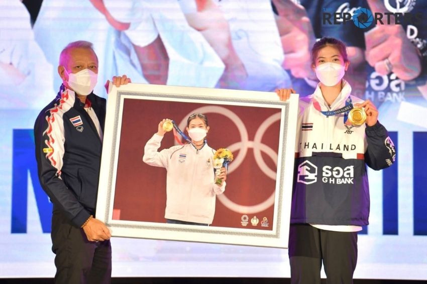 รมว.ท่องเที่ยวและกีฬา พร้อมทั้งคณะ ได้ร่วมกันมอบภาพประวัติศาสตร์และของที่ระลึกให้แก่ ผศ.พิมล ศรีวิกรม์ นายกสมาคมกีฬาเทควันโดแห่งประเทศไทย พร้อมด้วย นายธนฑิตย์ รักตะบุตร ผู้จัดการทีมเทควันโดทีมชาติไทย ตามด้วย “เทนนิส”พาณิภัค วงศ์พัฒนกิจ ฮีโร่เหรียญทองประวัติศาสตร์เทควันโดโอลิมปิกเกมส์ และ “จูเนียร์” รามณรงค์ เสวกวิหารี นักเทควันโดรุ่น 58 กก. ชาย พร้อมทั้งมอบให้ โค้ชเช ยอง ซอก หัวหน้าผู้ฝึกสอนเทควันโดทีมชาติไทย และโค้ชวิชิต สิทธิกัณฑ์ ก่อนที่ผู้สนับสนุนจะมอบของที่ระลึกให้กับนักกีฬา,โค้ช และผู้บริหารสมาคม