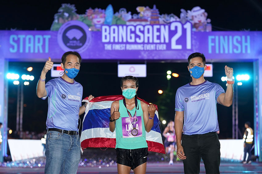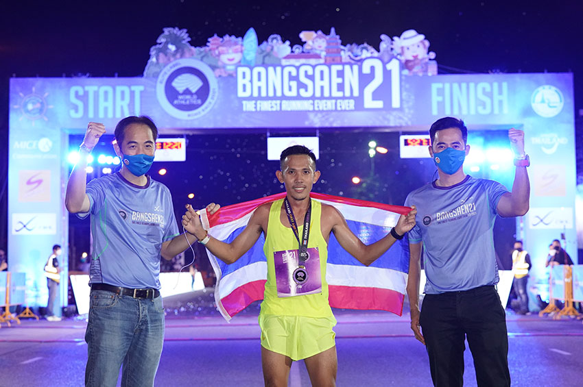 บิ๊ก-ณัฐวุฒิ อินนุ่ม และ ปลา-ลินดา จันทะชิต เข้าเส้นชัย รักษาแชมป์วิ่งฮาล์ฟมาราธอนบางแสน21-2021 ไว้ได้อีกครั้ง ผู้จัดปลื้มจัดงานประสบความสำเร็จอย่างยิ่งใหญ่สมมาตรฐานโลกอีกครั้ง ได้เห็นนักวิ่งเข้าเส้นชัยด้วยรอยยิ้ม