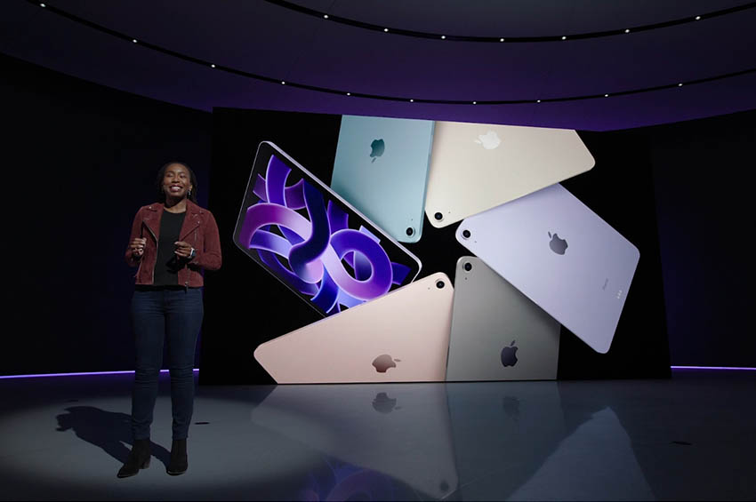 iPad Air 5 ใช้ชิป M1 รองรับ 5G กล้องหน้ารองรับเทคโนโลยี Center Stage ขยับหน้า คอ ไปทางไหนก็ติดตามใบหน้าไม่หลุดเฟรม มีรุ่นความจุ 64GB และ 256GB สีเทาสเปซเกรย์ สีสตาร์ไลท์ สีชมพู สีม่วง และสีฟ้า ใช้ปากกา Apple Pencil (รุ่นที่ 2) และใช้งานร่วมกับ Magic keyboard ได้ด้วย