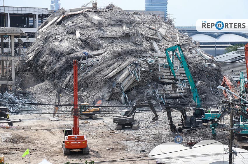 วันนี้ (3 เม.ย. 68) ผู้สื่อข่าวรายงานว่า เมื่อเวลา 13:56 น. เครื่องจักรหนักกลับมาทำงานอีกครั้ง โดยเริ่มทำการเจาะแผ่นคอนกรีตขนาดใหญ่ของอาคารสำนักงานตรวจเงินแผ่นดิน (สตง.) ที่พังถล่มลงมา บริเวณโซน A และโซน D ภายหลังเจ้าหน้าที่ได้หยุดการทำงานของเครื่องจักรกว่า 12 ชั่วโมง นับตั้งแต่เมื่อช่วงกลางดึกคืนที่ผ่านมา เพื่อเปิดทางให้เจ้าหน้าที่กู้ภัยเดินเท้าเข้าสำรวจ และค้นหาผู้ที่ติดอยู่ใต้ซากอาคาร หลังจากสแกนตรวจพบ และได้ยินสัญญาณขอความช่วยเหลือ