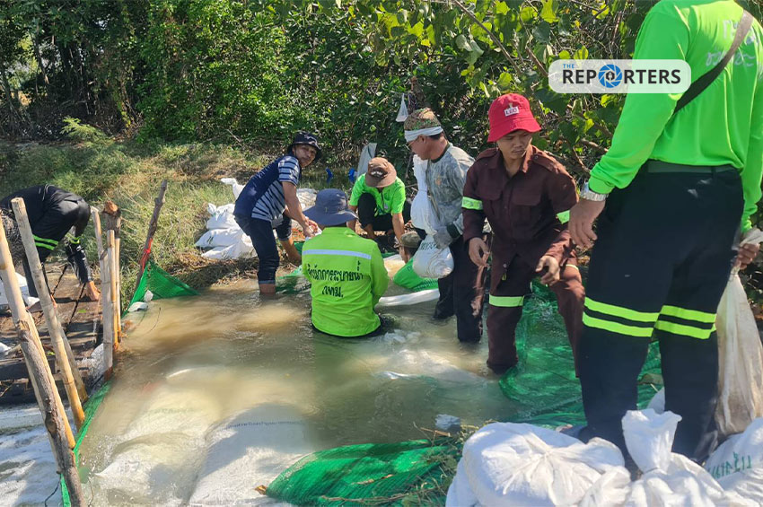 กทม. เสริมแนวกระสอบทราย แก้ไขน้ำทะเลหนุนเอ่อท่วมถนนบางขุนเทียน-ชายทะเล ยัน ไม่กระทบเขตชั้นใน