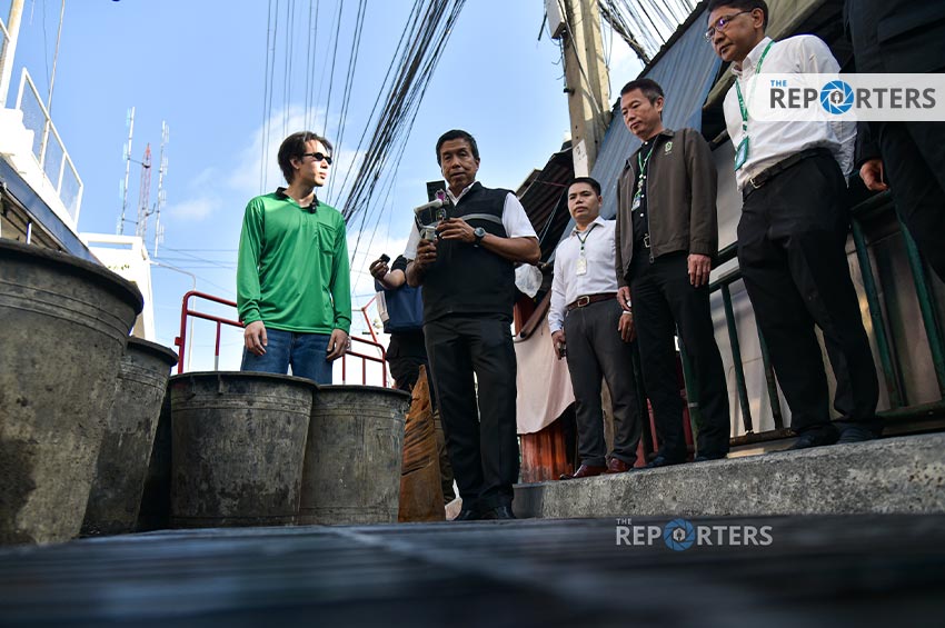 นายชัชชาติ สิทธิพันธ์ุ ผู้ว่าราชการกรุงเทพมหานคร ลงพื้นที่ติดตามการปฏิบัติงานลอกท่อระบายน้ำ เพื่อปราบไขมันอุดตันป้องกันน้ำท่วม ของสำนักการระบายน้ำกรุงเทพมหานคร หน้าตลาดพลู เขตธนบุรี กรุงเทพมหานคร