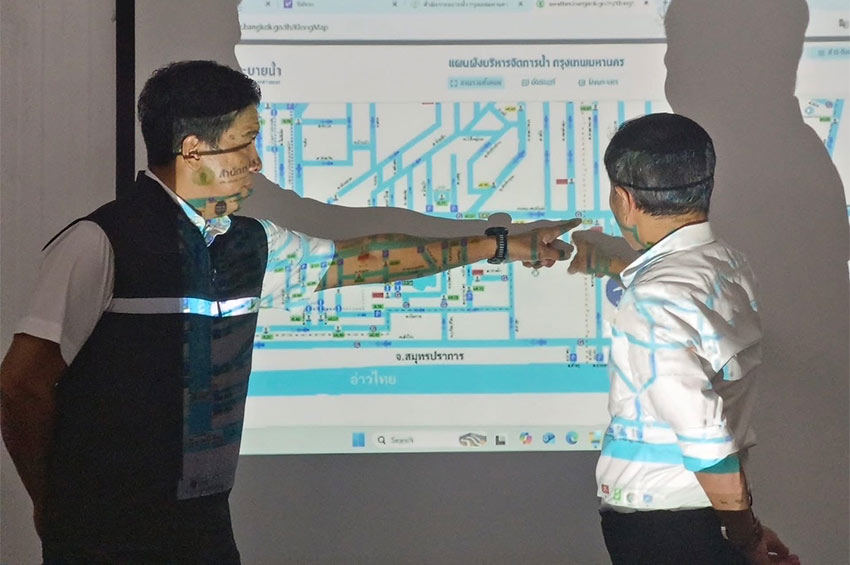 ผู้ว่าฯ ชัชชาติ กล่าวว่า ช่วงคืนที่ผ่านมาฝนตกหนักที่เขตลาดกระบัง ประมาณ 94.0 มม. รวมถึงทางใต้ลงไปแถวปากน้ำและรอบนอก โดยหลักการระบายน้ำคือ พื้นที่ลาดกระบังจะระบายน้ำผ่านคลองประเวศบุรีรมย์เป็นหลัก โดยแบ่งเป็น 2 ส่วนคือ ส่วนหนึ่งระบายออกไปทาง อ.แปดริ้ว จ.ฉะเชิงเทรา ซึ่งกรมโยธาธิการและผังเมืองเป็นผู้ดูแล อีกส่วนจะดึงมาที่ประตูน้ำพระโขนง