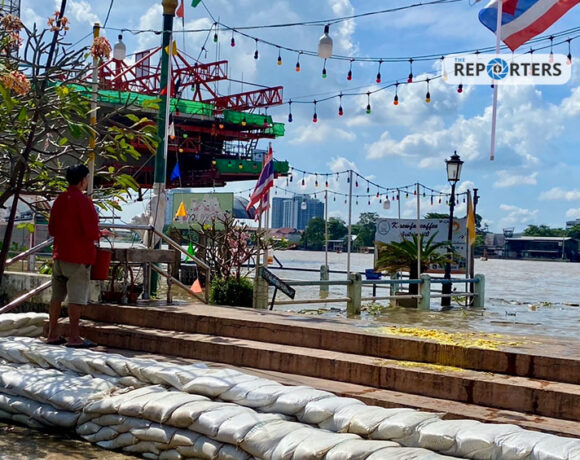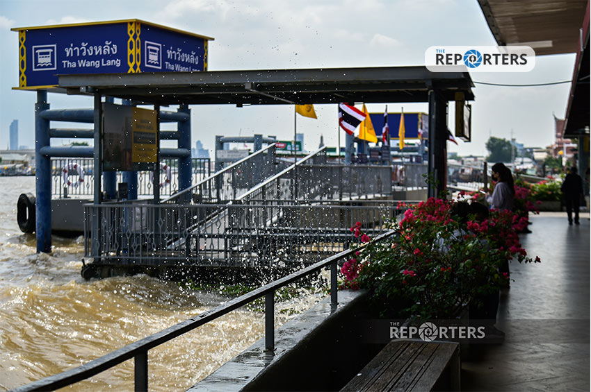 วันนี้ (10 พ.ย. 68) The Reporters ลงพื้นที่ตลาดวังหลัง สำรวจจุดที่น้ำล้นตลิ่ง และท่วมขึ้นมายังผิวถนนและบริเวณตลาด ซึ่งเป็นจุดที่เป็นแนวฟันหลอ หรือแนวนอกคันกั้นน้ำ โดยในช่วง 11:00 น. จะเป็นช่วงที่น้ำขึ้น ทำให้บริเวณดังกล่าวมีน้ำสูงขึ้นกว่าปกติ ทำให้เจ้าหน้าที่ กทม. ต้องนำสะพาน หรือกระสอบทราย มาวางไว้เป็นระยะ ๆ เพื่อให้ประชาชนสามารถเดินได้