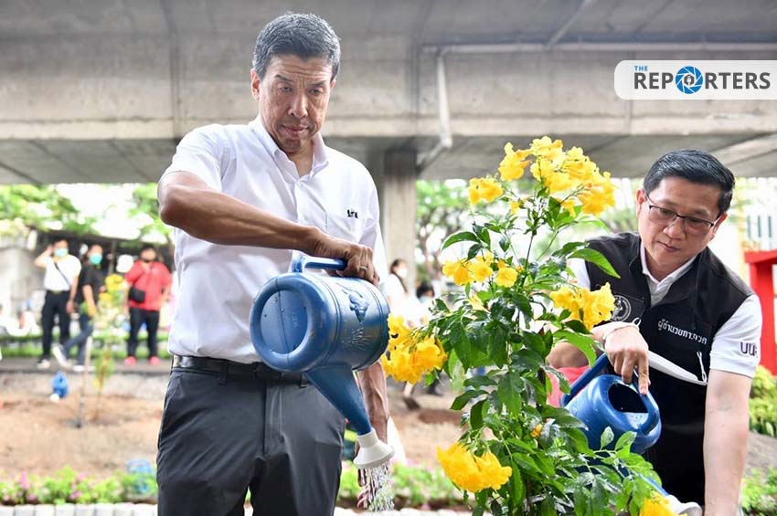 ‘ชัชชาติ’ ปลูกต้นทองอุไรและต้นเฟื่องฟ้า พัฒนา ‘สวน 15 นาที’ เพิ่มพื้นที่สีเขียว