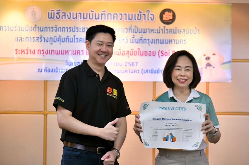 กรุงเทพมหานคร และ มูลนิธิเพื่อสุนัขในซอย จึงลงนาม MOU เพื่อควบคุมการเพิ่มประชากรสัตว์พาหะนำโรคพิษสุนัขบ้า โดยการผ่าตัดทำหมันสุนัขแมวจรจัดและมีเจ้าของ และการฉีดวัคซีนป้องกันโรคพิษสุนัขบ้าในสุนัขและแมว สร้างภูมิคุ้มกันโรคพิษสุนัขบ้าในสัตว์ รวมถึงการให้ความรู้ คำปรึกษา และคำแนะนำแก่ประชาชนในการป้องกันโรคพิษสุนัขบ้า และการจัดการสวัสดิภาพสัตว์ในพื้นที่เขตกรุงเทพมหานคร