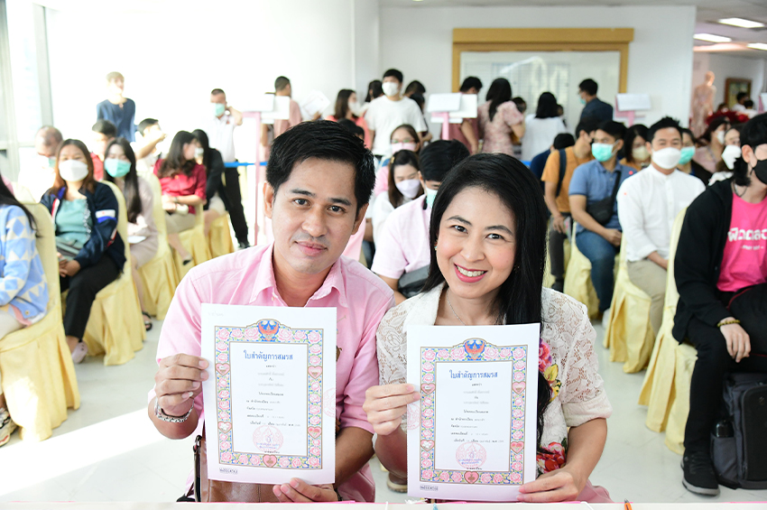 วาเลนไทน์ชื่นมื่น เหล่าคู่รักกุมมือจดทะเบียนสมรสที่บางรัก