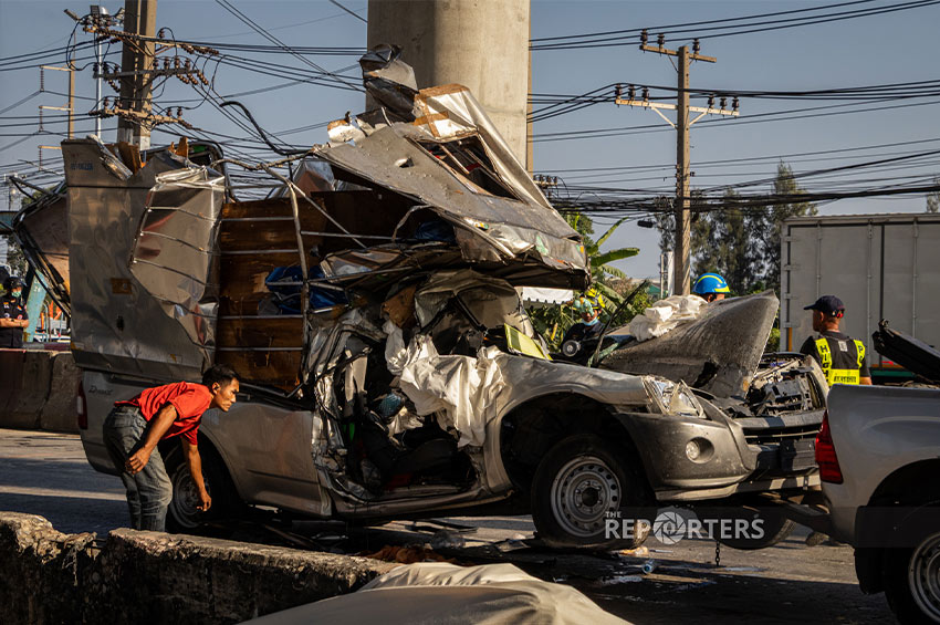 ประมวลภาพเหตุเครนถล่มถนนพระราม 2 เร่งเก็บกู้ร่างผู้เสียชีวิตออกจากพื้นที่ภายในวันนี้