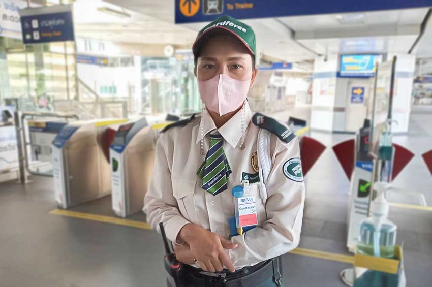 จินตนา ถึกขุนทด วัย 37 ปี พนักงานรักษาความปลอดภัยบนรถไฟฟ้า ให้ข้อมูลว่า “การเป็นเจ้าบ้านที่ดี ก็ให้ปฏิบัติตามหน้าที่ของตัวเองค่ะ คือการดูแลและให้ข้อมูลผู้โดยสาร เกี่ยวกับการใช้บริการค่ะ โดยเฉพาะสถานีศูนย์ประชุมแห่งชาติสิริกิติ์ ที่จะมีการปิดสถานีไม่ให้ผู้โดยสารขึ้นลง เราก็จะให้ข้อมูลผู้โดยสารไปลงในสถานีใกล้เคียง และนั่งรถที่จัดไว้ให้เพื่อเดินทางต่อไปทำงานได้ค่ะส่วนการประชุมเอเปคจะมีผลไหมกับเศรษฐกิจของบ้านเรา คิดว่าโดยรวมนั้นน่าจะทำให้เกิดเรื่องดีๆเรื่องการค้าขายค่ะ เพราะเป็นแลกเปลี่ยนข้อมูลระหว่างกัน แต่โดยส่วนตัวก็ไม่รู้ว่าเป็นการระดมสมอง เกี่ยวกับเศรษฐกิจในแง่มุมใดค่ะ”
