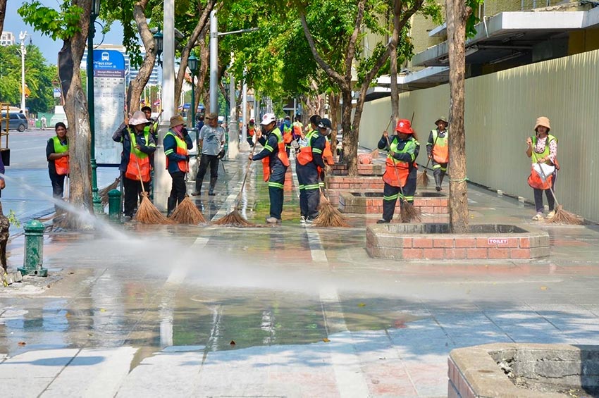 วันนี้ (16 เม.ย.67) นายชัชชาติ สิทธิพันธุ์ ผู้ว่าราชการกรุงเทพมหานคร ตรวจพื้นที่บนถนนข้าวสาร และให้กำลังใจเจ้าหน้าที่ผู้อยู่เบื้องหลังความสะอาดหลังจบงานสงกรานต์ โดยเจ้าหน้าที่เริ่มทำความสะอาดตั้งแต่เวลา 04.00 น. พร้อมรถน้ำกว่า 6 คัน เก็บกวาดขยะ จัดเก็บอุปกรณ์ และฉีดล้างทำความสะอาดถนนข้าวสาร และพื้นที่โดยรอบ ซึ่งคาดว่าจะทำความสะอาดแล้วเสร็จในช่วงบ่ายวันนี้