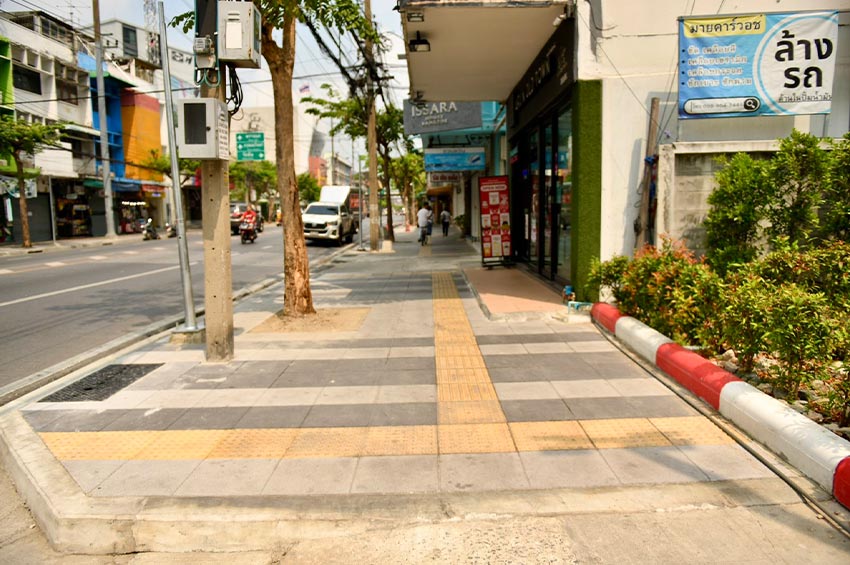 2.ลดระดับความสูงคันหินทางเท้าบริเวณทางเข้าออกอาคารหรือซอยต่าง ๆ ให้สูง 10 เซนติเมตร จากเดิม 18.50 เซนติเมตร