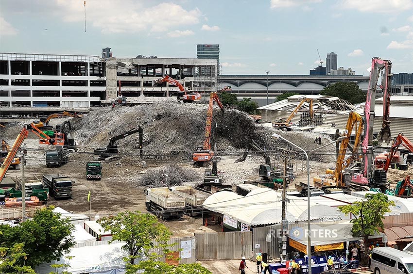 ส่วนจะแล้วเสร็จภายในสิ้นเดือนเมษายนหรือไม่ นายชัชชาติ ระบุว่าเรายังคงลุยต่อ เพื่อให้เจ้าหน้าที่มีกำลังใจ และเป้าหมาย ซึ่งเรากำหนดเป้าหมายไว้ว่าในช่วงเดือนเมษายนเราจะต้องลุยให้เต็มที่ แต่ก็ต้องขึ้นอยู่กับสถานการณ์หน้างาน เพราะไม่ใช่เพียงแค่ต้องรื้อตึกแต่ต้องค้นหาผู้ที่ติดค้างอยู่ภายในซาก รวมถึงมีการฆ่าเชื้อภายในไซด์งานยังคงมีการทำอยู่ตลอดเวลา อย่างเจ้าหน้าที่หลังปฎิบัติภารกิจเสร็จออกมาก็ต้องมีการพ่นฆ่าเชื้อ และเรามีการตรวจสอบคุณภาพน้ำอยู่ตลอด เพื่อให้เกิดความมั่นใจว่าจะไม่มีสิ่งอันตรายปะปนมาสู่คนด้านนอก