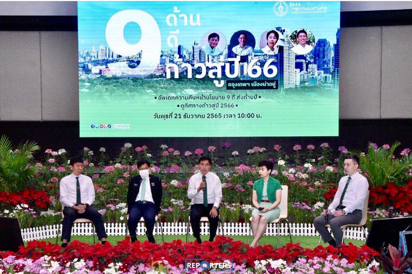 วันนี้ (21 ธ.ค.65) กรุงเทพมหานคร จัดแถลงข่าวความคืบหน้านโยบาย 9 ด้าน 9 ดี ก้าวสู่ปี 2566 โดย รศ.ดร.ทวิดา กมลเวชช นายจักกพันธุ์ ผิวงาม รศ.ดร.วิศณุ ทรัพย์สมพล นายศานนท์ หวังสร้างบุญ รองผู้ว่าราชการกรุงเทพมหานคร