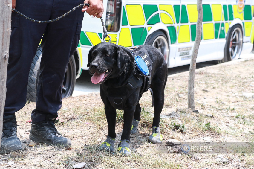 ’ลอมเนล‘ สุนัขจากกรมการสัตว์ทหารบก ร่วมภารกิจช่วยเหลือผู้ติดในซากอาคาร
