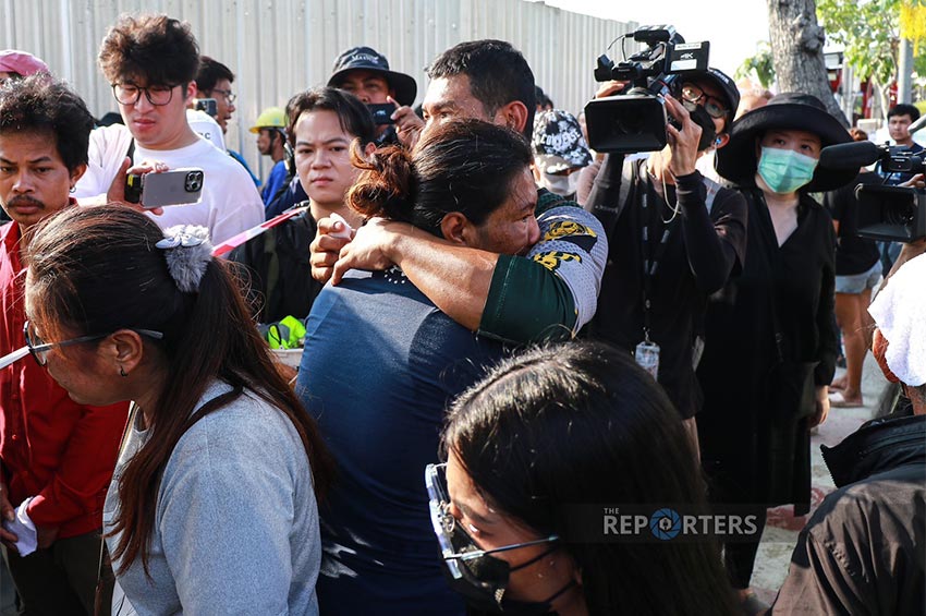 วันนี้ (29 มี.ค.68) ผู้สื่อข่าวรายงานว่า เข้าสู่ช่วงเย็น เจ้าหน้าที่ยังคงระดมกำลัง พร้อมเครื่องมือ และเครื่องจักรเข้าในพื้นที่ก่อสร้างอาคารสำนักงานตรวจเงินแผ่นดินแห่งใหม่ เพื่อเร่งรื้อเศษซากของตึกที่พังถล่มลงมา เปิดเส้นทางในการเข้าสำรวจหาผู้ที่ยังติดอยู่ภายใน โดยใช้เครื่องจักรตัดชิ้นส่วนของซากตึก เพื่อทยอยนำออกจากพื้นที่ ทำให้เกิดฝุ่นฟุ้งไปทั่ว และได้ใช้รถฉีดน้ำของสำนักป้องกันและบรรเทาสาธารณภัย ฉีดน้ำเพื่อให้ฝุ่นเบาบางลง