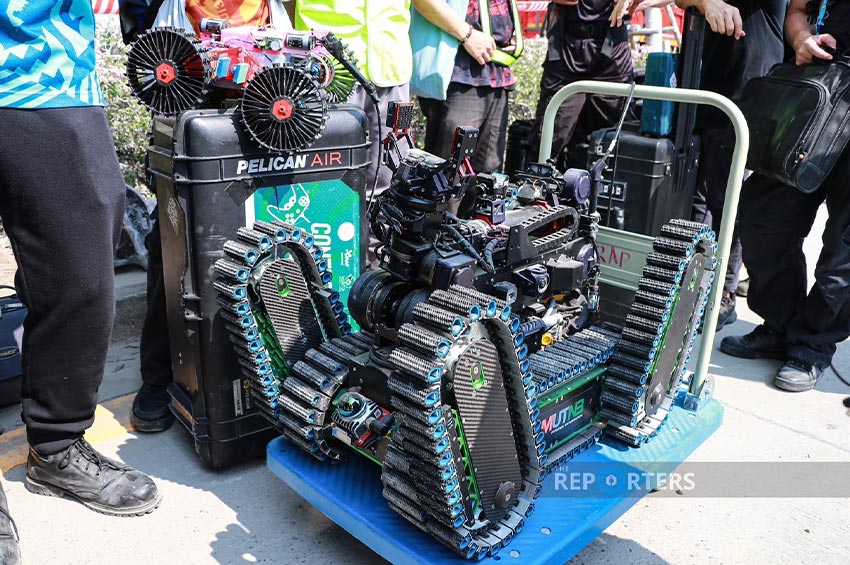 นอกจากนี้ เจ้าหน้าที่ได้นำหุ่นยนต์สุนัข และรถหุ่นยนต์เข้าช่วยค้นหาผู้ที่ยังติดอยู่ใต้ซาก โดยมีกองอำนวยการที่คอยมอนิเตอร์ ตรวจสอบเพื่อค้นหาสัญญาณชีพของผู้ที่ติดอยู่ภายใน