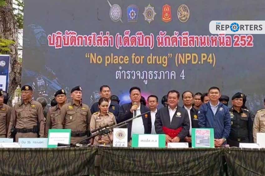 สำหรับปฏิบัติการไม่มีที่ยืนให้นักค้ายาเสพติด No Place for Drug (NPD) ของตำรวจภูธรภาค 4 ไล่ล่านักค้าแดนอีสานเหนือ 252 ดำเนินการตั้งแต่เดือนธันวาคม 2566 โดยทุกพื้นที่ในสังกัด ภ.4 ทั้ง 252 สถานีตำรวจ และ บก.สส.ภ.4 ปูพรม สืบสวนขยายผล จากผู้เสพนำไปสู่ผู้ค้ารายย่อย ออกหมายจับนักค้าจำนวน 381 ราย ตรวจค้นบุคคลตามหมายจับค้างเก่าจำนวน 400 หมาย สามารถจับกุมนักค้าได้ 309 ราย ตรวจค้นจับกุมหมายจับค้างเก่าได้ 43 ราย ของกลางยาบ้า 1,418,412 เม็ด ไอซ์ 0.62 กิโลกรัม ยึดและอายัดทรัพย์สิน 1,318 รายการ คิดเป็นมูลค่ารวม 171,605,208 บาท แยกเป็น