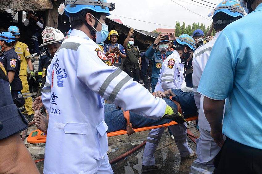 ผู้ว่าราชการกรุงเทพมหานคร เปิดเผยภายหลังลงพื้นที่ว่า จากการตรวจสอบพบว่าเจ้าหน้าที่อาสาสมัครที่เสียชีวิต 3 ราย คือ นายธนภพ ประไพ อายุ 44 ปี นายสมัชญา นิลธง อายุ 48 ปี และนายอรรถพล ถ้วมทอง อายุ 26 ปี โดยสามารถนำร่างผู้เสียชีวิตออกมาได้เพียง 1 ราย อีก 2 ราย ยังติดอยู่ใต้คาน ซึ่งเจ้าหน้าที่ไม่สามารถใช้เครื่องมือหนักเข้าพื้นที่เพื่อเคลื่อนย้ายร่างผู้เสียชีวิตและผู้ยังคงติดอยู่ข้างในได้ เนื่องจากเกรงว่าโครงสร้างส่วนที่เหลือจะเสียหายและถล่มทับลงมาอีก จึงได้ใช้เครื่องมือขุดเจาะบริเวณด้านข้างแทน จากการประสานมูลนิธิที่มาร่วมลงพื้นที่วันนี้พบว่ายังไม่มีรายงานเจ้าหน้าที่ของมูลนิธิใดที่หายไป สำหรับสาเหตุเพลิงไหม้อยู่ระหว่างกองพิสูจน์หลักฐานเข้าตรวจสอบ แต่เนื่องจากไฟยังดับไม่สนิทจึงยังไม่สามารถเข้าพื้นที่ได้