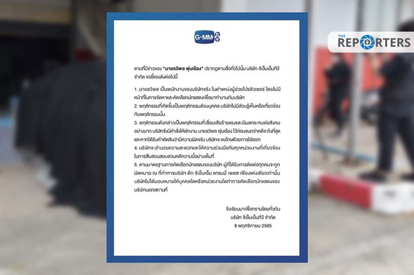 GMM TV สั่งพักงานผู้ช่วยโปรดิวเซอร์ซีรีส์วาย จนกว่าคดีจะถึงที่สุด หากผิดจริงจะไล่ออก