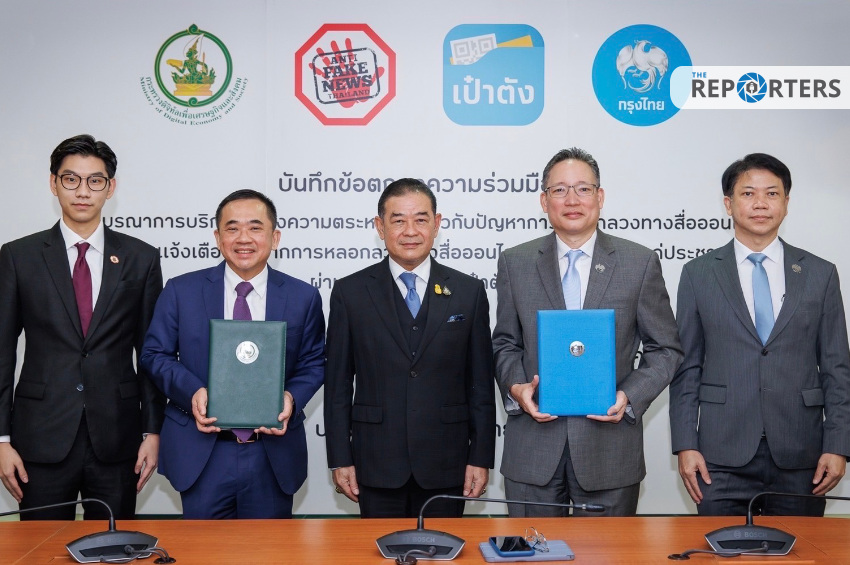 ศาสตราจารย์พิเศษวิศิษฏ์ วิศิษฏ์สรอรรถ ปลัดกระทรวงดิจิทัลเพื่อเศรษฐกิจและสังคม (ดีอีเอส) และนายผยง ศรีวณิช กรรมการผู้จัดการใหญ่ ธนาคารกรุงไทย จำกัด (มหาชน) ได้ร่วมลงนามบันทึกข้อตกลงความร่วมมือ “การบูรณาการบริการสร้างความตระหนักรู้ เกี่ยวกับปัญหาการหลอกลวงทางสื่อออนไลน์ และการแจ้งเตือนภัยจากการหลอกลวง ทางสื่อออนไลน์และข่าวปลอมแก่ประชาชนผ่านแอพพลิเคชัน “เป๋าตัง” ที่มีผู้ใช้งานมากกว่า 40 ล้านคน เพื่อเพิ่มการเข้าถึงประชาชน และป้องกันและลดความสูญเสีย ก่อนตกเป็นเหยื่อมิจฉาชีพออนไลน์