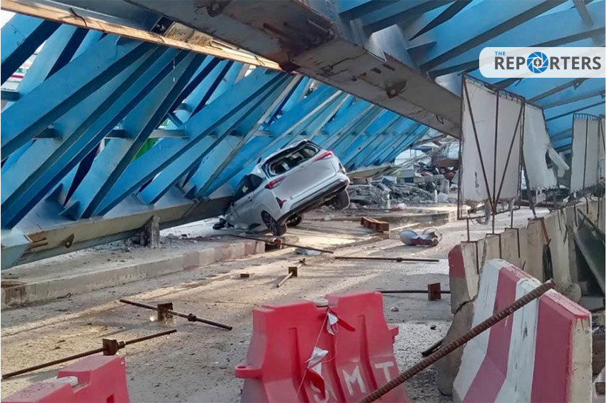 CRIME เกิดเหตุสะพานข้ามแยกบริเวณหน้าโลตัสลาดกระบังพังถล่ม มีผู้บาดเจ็บ เสียชีวิตหลายราย เมื่อเวลา 18.00 น. วันนี้ (10 ก.ค. 66) เกิดเหตุสะพานข้ามแยกบริเวณหน้าโลตัสลาดกระบัง ถนนหลวงแพ่ง เขตลาดกระบัง ซึ่งกำลังอยู่ระหว่างการก่อสร้างเกิดทรุดตัว พังถล่มลงมา เบื้องต้นมีรายงานมีผู้เสียชีวิต 2 ราย และบาดเจ็บอีกหลายราย สาเหตุอยู่ระหว่างการตรวจสอบ ขอบคุณภาพ: มูลนิธิร่วมกตัญญู Tags: ทรุดตัว พังถล่ม สะพานข้ามแยก โลตัสลาดกระบัง แนะแนวเรื่อง Previous Previous post: มาสเตอร์การ์ด จับมือ ลูบัดส์ เปิดตัว ลูม่า (LUMA) ที่ 1881 Heritage ในฮ่องกงNext Next post: ตลาดหลักทรัพย์มอสโก ซื้อขาย ‘เงินหยวน’ มากกว่าเงินเงินดอลลาร์สหรัฐ Related Posts ‘อ๊อฟ AF‘ ควงแม่ เข้าพบตำรวจ ปคบ. แจงปมดิไอคอนกรุ๊ป พิสูจน์ความบริสุทธิ์ใจ ตำรวจสุทธิสาร รวบคนร้ายแต่งกายเป็น Food Delivery วิ่งราวทรัพย์อาม่าอายุ 73 ปี โฆษก ตร.แจงภาพผู้การชลบุรี รับรางวัล เป็นการรับรางวัลในฐานะตัวแทนหน่วยงาน