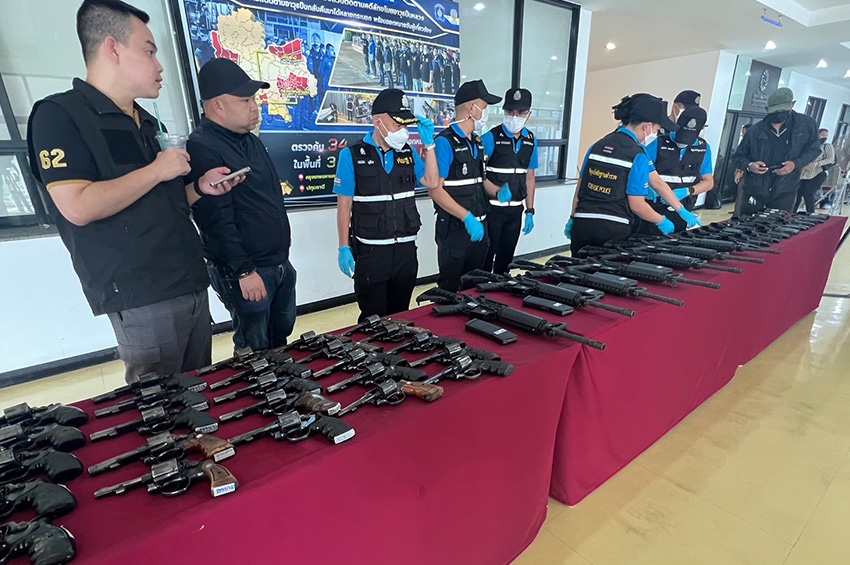 วันนี้ (10 พ.ย. 65) พล.ต.อ.สุรเชษฐ์ หักพาล รอง ผบ.ตร.(สส.) พล.ต.ต.พนัญชัย ชื่นใจธรรม รอง ผบช.ภ.1 แถลงผลการปฏิบัติงาน นำกำลังเข้าปิดล้อมตรวจค้น บ้าน อาคารที่พัก จำนวน 34 จุด 3 จังหวัด ได้แก่ ปทุมธานี นนทบุรี และกรุงเทพมหานคร เพื่อค้นหาอาวุธปืนของ สภ.ปากเกร็ด ที่ถูกลักไปจำนำ และจำหน่าย โดยออกหมายจับผู้เกี่ยวข้องแล้ว 13 ราย สามารถตรวจยึดคืนมาได้ 64 กระบอก และ จับกุมผู้ต้องหา 4 ราย ณ สโมสรตำรวจ