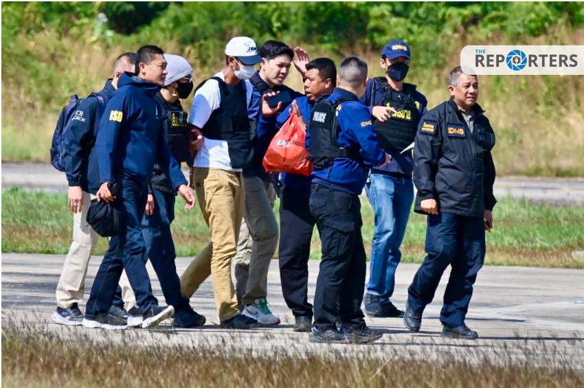 วันนี้ (11 ธ.ค. 68) เวลา 13:45 น. ที่กองบินตำรวจ พล.ต.ท.สมประสงค์ เย็นท้วม ผู้ช่วยผู้บัญชาการตำรวจแห่งชาติ พร้อมด้วย พล.ต.ต.ธีรเดช ธรรมสุธีร์ ผบก.สส.บช.น. และชุดสืบนครบาล นำตัวนายเอกลักษณ์ แพน้อย หรือ จ่าเอ็ม ผู้ต้องหาตามหมายจับคดียิง นายลิม กิมยา อดีต สส.ฝ่ายค้าน ประเทศกัมพูชา เพื่อมาดำเนินคดีต่อที่ สน.ชนะสงคราม โดยมี พล.ต.ท.สยาม บุญสม ผู้บัญชาการตำรวจนครบาล และเจ้าหน้าหน่วยอรินทราช 26 มารอรับ
