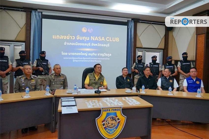 วันนี้ (15 มิ.ย. 67) ที่ว่าการอำเภอเมืองชลบุรี นายอนุทิน ชาญวีรกูล รองนายกรัฐมนตรี และรัฐมนตรีว่าการกระทรวงมหาดไทย แถลงข่าว พร้อมกล่าวขอบคุณทีมทำงานชุดปฏิบัติการร่วมฝ่ายปกครอง ตำรวจ สนธิกำลังบุกทลาย NASA CLUB อ.เมือง จ.ชลบุรี หลังเปิดให้มีการมั่วสุมยาเสพติดว่า ปฏิบัติการนี้ ได้รับความร่วมมือจากสำนักงานตำรวจแห่งชาติ บูรณาการฝ่ายปกครอง และหน่วยงานที่เกี่ยวข้อง เข้าตรวจค้น พบการกระทำผิดกฎหมาย ทั้งเปิดเกินเวลา ไม่มีใบอนุญาต ปล่อยให้นักท่องเที่ยวใช้สารเสพติด มีการขายภายในร้าน