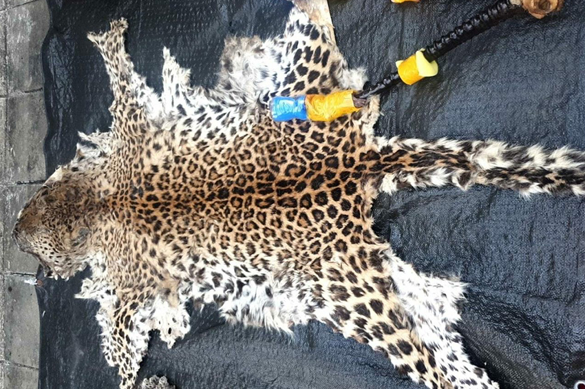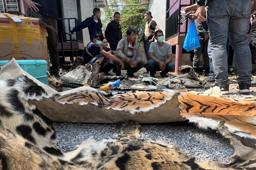 จากการตรวจค้นห้องพัก เจ้าหน้าที่พบซากหนังเสือหลายชนิด จำนวน 6 ผืน ประกอบด้วย หนังเสือโคร่งความยาว 3.10 เมตร กว้าง 80 ซม. , หนังเสือดาว กว้างกว่า 2 เมตร 2 ผืน , หนังเสือลายเมฆ 3 ผืน , เขากวางออริกซ์ 1 เขา และลูกแมวดาว 3 ตัว (ยังมีชีวิต) จึงควบคุมตัวนายไมตรี บุญเศรษฐ์ศิริ อายุ 40 ปี ชาว อ.วิเชียรบุรี จ.เพชรบูรณ์ , นายดวงดี มูลสามารถ อายุ 32 ปี , น.ส.วันเพ็ญ ไกโคกสูง อายุ 45 ปี และนายกิน อายุ 44 ปี ชาวเมียนมา ซึ่งพบว่าอยู่รวมกันในห้องพักดังกล่าว