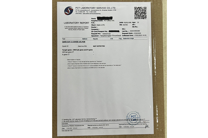 การจับกุมครั้งนี้ สืบเนื่องจากเจ้าหน้าที่ได้รับเรื่องร้องเรียนจากกรมสนับสนุนบริการสุขภาพ ว่า มีเว็บไซต์หนึ่งโฆษณาขายใบรับรองผลการตรวจโควิด ราคา 890 บาท รับผลภายใน 15 นาที เพียงแจ้งชื่อนามสกุล วันที่ออกใบรับรองผลการตรวจโควิด โดยผู้ตรวจไม่ต้องเดินทางไปตรวจ ขณะที่ใบรับรองจะออกในนาม บริษัท พีซีที ลาบอราตอรี่ เซอร์วิส จํากัด (PCT LABORATORY SERVICE CO,.LTD.) ซึ่งจากการตรวจสอบกับบริษัทดังกล่าว พบว่า เป็นใบรับรองผลปลอม บริษัทไม่ได้เป็นผู้ออกให้ เป็นเหตุให้บริษัทได้รับความเสียหาย บริษัทจึงได้แจ้งความร้องทุกข์ต่อพนักงานสอบสวน