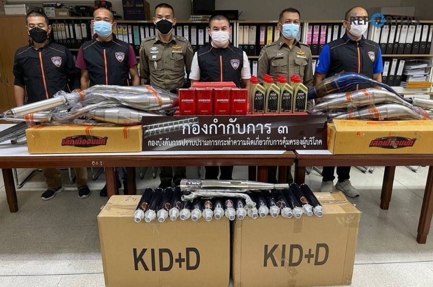ตำรวจ กก.3 บก.ปคบ. แบ่งกำลังนําหมายค้นของศาลจังหวัดนนทบุรี เข้าตรวจค้น อาคารพาณิชย์ 3 ชั้น 2 คูหา ย่านนนทบุรี หลังจากชุดสืบสวนสืบทราบว่า สถานที่ ดังกล่าวเป็นสถานที่รับซ่อมรถจักรยานยนต์และจําหน่ายอุปกรณ์ตกแต่งรถจักรยานยนต์ ในลักษณะเพื่อเพิ่มความแรงและเพื่อใช้ในการแข่งขัน และยังอาจลักลอบผลิตและจำหน่ายท่อไอเสียรถจักรยานยนต์ ที่ไม่ได้มาตรฐานอุตสาหกรรม (มอก.) ให้แก่กลุ่มวัยรุ่น