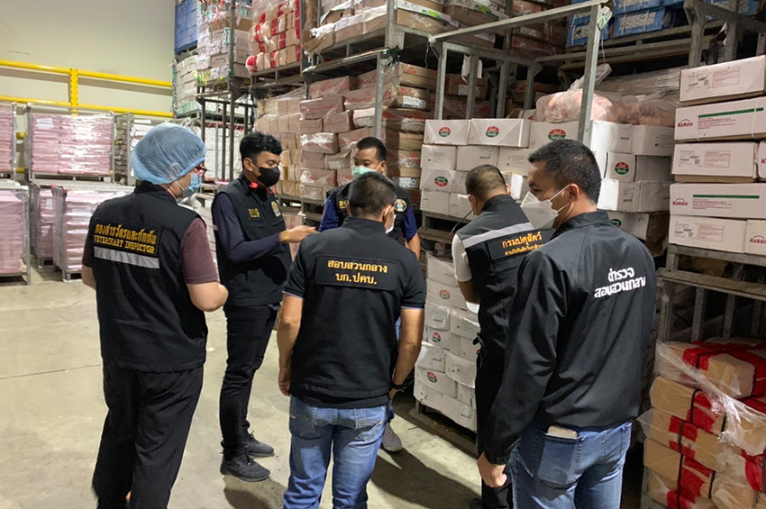 เจ้าหน้าที่ชุดตรวจยึด กองบังคับการปราบปรามการกระทำความผิดเกี่ยวกับการคุ้มครองผู้บริโภค กองบัญชาการตำรวจสอบสวนกลาง นำโดย พ.ต.ต.ศิษฏพงศ์ สิริวัฒน์ สว.กก.1 บก.ปคบ. ร่วมกับ เจ้าหน้าที่ชุดปฏิบัติการพิเศษพญาไท และกองสารวัตรและกักกัน กรมปศุสัตว์ เข้าตรวจค้นเย็นแห่งหนึ่ง ในพื้นที่ อ.เมือง จ.สมุทรสาคร วานนี้ (15 พ.ย. 65) หลังสืบทราบว่า ห้องเย็นดังกล่าวประกอบกิจการลักษณะรับฝากและผลิตจำหน่ายสินค้าปศุสัตว์ จึงอาศัยอำนาจของเจ้าหน้าที่ปศุสัตว์ในการเข้าไปตรวจสอบ