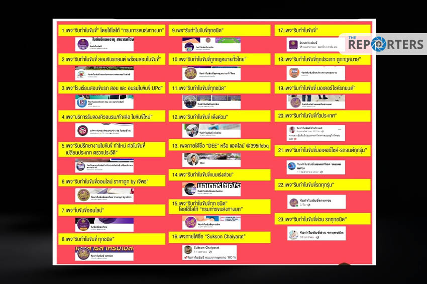 1.เพจเฟซบุ๊ก “รับทำใบขับขี่” โดยใช้โลโก้ “กรมการขนส่งทางบก”
