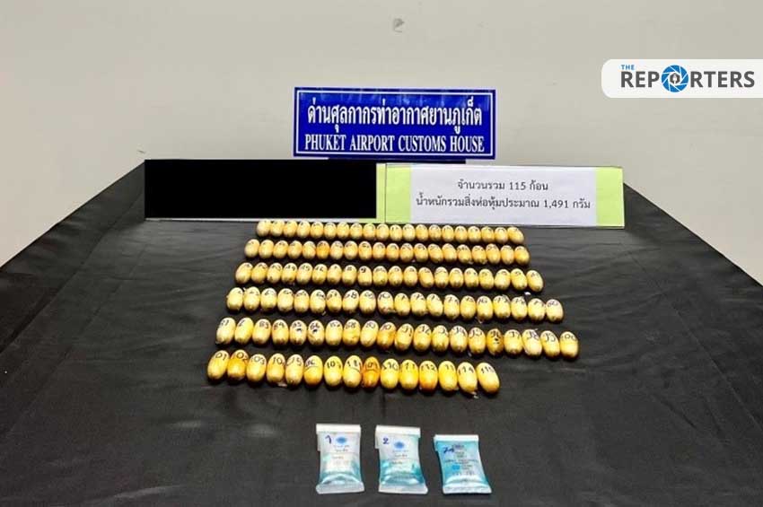 วันที่ 9 มิ.ย.65 ด่านศุลกากรท่าอากาศยานภูเก็ต ตรวจค้นผู้ต้องสงสัยเพศชาย อายุ 29 ปี สัญชาติแอฟริกาใต้ เดินทางมาจากกรุงแอดดิสอาบาบา สหพันธ์สาธารณรัฐประชาธิปไตยเอธิโอเปีย ถึงปลายทางท่าอากาศยานนานาชาติภูเก็ต ในวันที่ 9 มิ.ย. 65 เวลาประมาณ 12.30 น. ผลการตรวจค้นสัมภาระไม่พบสิ่งผิดกฎหมาย แต่พบว่ามีข้อพิรุธที่อาจจะลักลอบกลืนยาเสพติด จึงนำตัวไปโรงพยาบาลถลาง จ.เก็ต เพื่อเอกซเรย์ร่างกาย