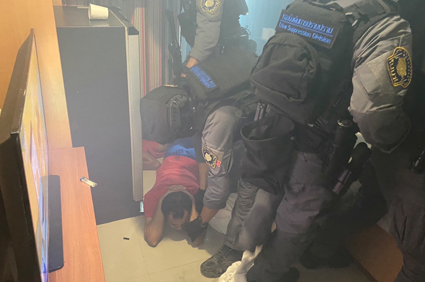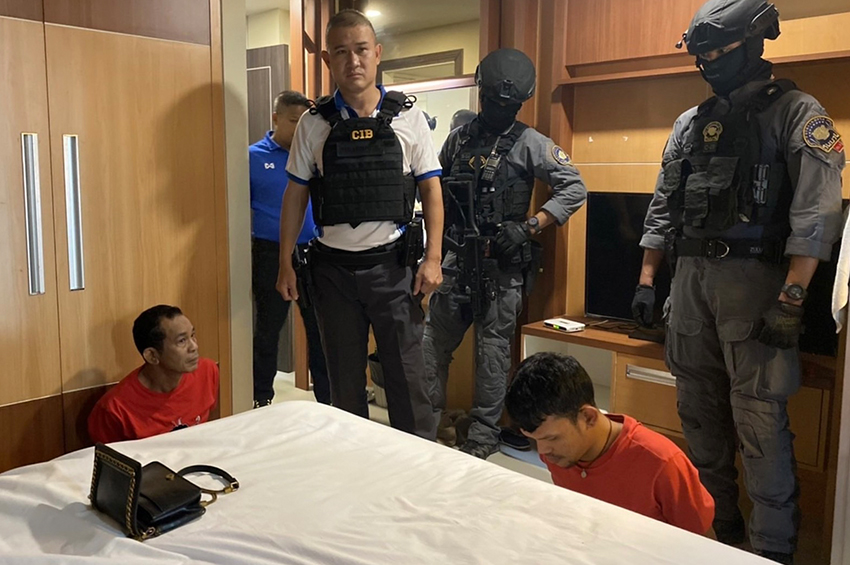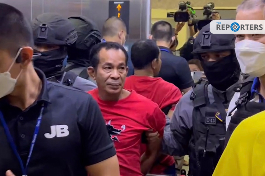 วันนี้ (24 มี.ค. 65) ชุดหนุมานกองปราบ นำโดย พลตำรวจโท จิรภพ ภูริเดช ผู้บัญชาการสอบสวนกลาง คุมตัว นายจำรัส รักจันทร์ อายุ 44 ปี หรือ ฉุย เขาจันทร์ นายอัฐพล ใหม่อ่อน หรือ รวย อายุ 21 ปี มายังกองบัญชาการสอบสวนกลาง เพื่อสอบปากคำ หลังจากที่สามารถจับตัวได้ที่โรงแรมแห่งหนึ่งหลังมหาวิทยาลัยรามคำแหง ย่านหัวหมาก