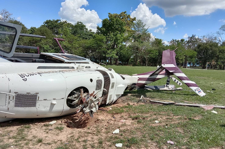 เฮลิคอปเตอร์ รองผู้บัญชาตำรวจภูธรภาค 3 พร้อมคณะ ตกขณะลงจอดที่สนามชั่วคราว จ.สุรินทร์ บาดเจ็บเล็กน้อย