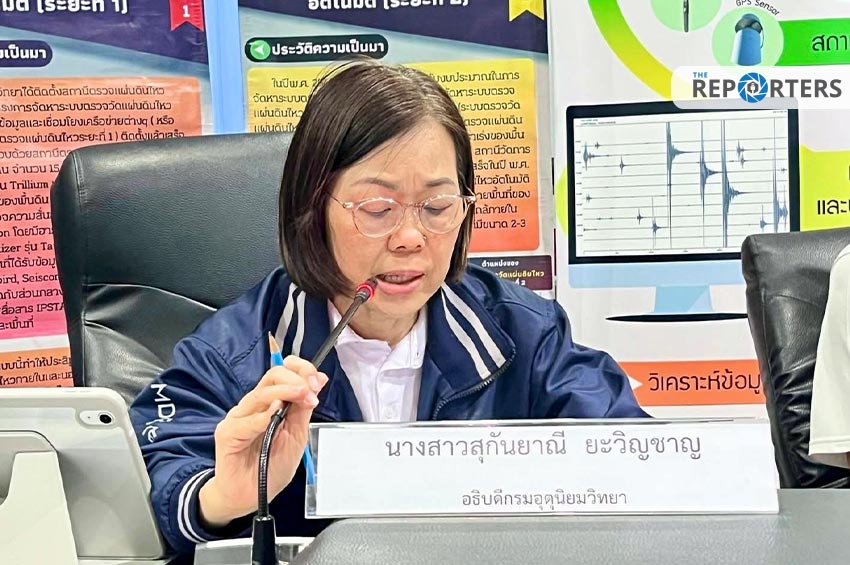 เมื่อเวลา 17.00 น. วันนี้ (28 มี.ค. 68) ดร.สุกันยาณี ยะวิญชาญ อธิบดีกรมอุตุนิยมวิทยา พร้อมด้วย นายนัฐวุฒิ แดนดี รองอธิบดีกรมอุตุนิยมวิทยาฝ่ายวิชาการ และโฆษกกรมอุตุนิยมวิทยา ประชุมผ่านระบบออนไลน์ ณ ห้องประชุมชั้น 1 กองเฝ้าระวังแผ่นดินไหวให้ข้อมูลเหตุการณ์แผ่นดินไหว โดยมี น.ส.แพทองธาร ชินวัตร นายกรัฐมนตรี และหน่วยงานที่เกี่ยวข้องร่วมประชุม อธิบดีกรมอุตุนิยมวิทยา รายงานว่ากรมอุตุนิยมวิทยาตรวจพบแผ่นดินไหว ขนาด 8.2 ความลึก 10 กิโลเมตร มีศูนย์กลางบริเวณเมืองมัณฑะเลย์ ประเทศเมียนมา ห่างจากอำเภอปางมะผ้า จังหวัดแม่ฮ่องสอน 320 กิโลเมตร ทำให้รู้สึกสั่นไหวได้เป็นบริเวณกว้างในประเทศไทย โดยเฉพาะภาคเหนือ ภาคกลาง รวมทั้งกรุงเทพมหานครและปริมณฑล สาเหตุเกิดจากกลุ่มรอยเลื่อนสะกาย (Sagaing Fault) ซึ่งเป็นรอยเลื่อนที่มีพลัง มีความยาวประมาณ 1,200 กม. วางตัวอยู่แนวทิศเหนือ-ใต้ ผ่านกลางประเทศเมียนมา โดยขณะรายงานในที่ประชุมมีอาฟเตอร์ช็อกเกิดขึ้นแล้วประมาณ 27 ครั้ง จนถึงเวลา 19.32 น.ความรุนแรงมีแนวโน้มลดลง พร้อมย้ำว่าเป็นการเกิดแผ่นดินไหวบนบกไม่ได้เกิดที่ทะเล จึงไม่มีการเกิดสึนามิ