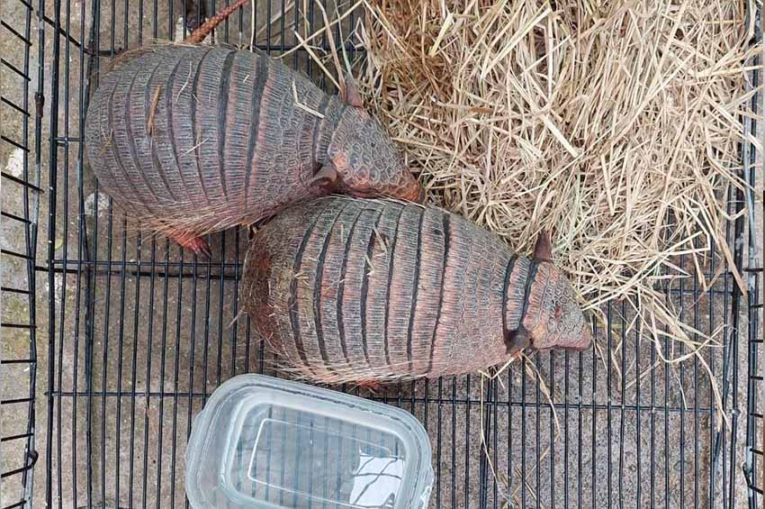 นายธชพรรณ ลีลาพตะ สัตวแพทย์กลุ่มงานจัดการสุขภาพสัตว์ป่า สำนักอนุรักษ์สัตว์ป่า เปิดเผยหลังกลุ่มงานจัดการสุขภาพสัตว์ป่า รับมอบของกลางจากด่านตรวจสัตว์ป่าท่าอากาศยานสุวรรณภูมิ จากกรณีจับกุมผู้ต้องหาชาวอินเดียลักลอบนำสัตว์ส่งออกไปยังประเทศอินเดีย ว่า ของกลางมีทั้งหมด 6 ชนิด จำนวน 103 ตัว ประกอบด้วย อาร์มาดิลโล (Armadillo) 2 ตัว , เม่น 2 ตัว , อีกัวน่า 50 ตัว , เต่า Yellow spot river turtle 35 ตัว , กิ้งก่าซูดาน 6 ตัว และ Peter banded skink 8 ตัว