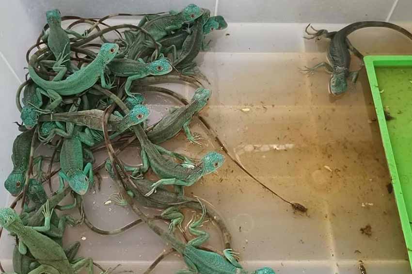 จากการตรวจสอบสัตว์ดังกล่าว พบอีกัวน่าตาย 2 ตัว ส่วนสุขภาพสัตว์ตัวอื่นๆ เบื้องต้น พบว่า เม่นและอาร์มาดิลโลมีภาวะเครียดและค่อนข้างตื่นกลัว สัตว์เลื้อยคลานทั้งหมดอยู่ในภาวะขาดน้ำ เจ้าหน้าที่ได้ให้วิตามินเสริม ดูแลเรื่องความชื้น อุณหภูมิ และอาหารเพ่อให้เหมาะสมกับสัตว์ของกลางแต่ละชนิด ก่อนส่งสัตว์ของกลางทั้งหมดไปยังศูนย์ช่วยเหลือสัตว์ป่า หรือสถานีเพาะเลี้ยง