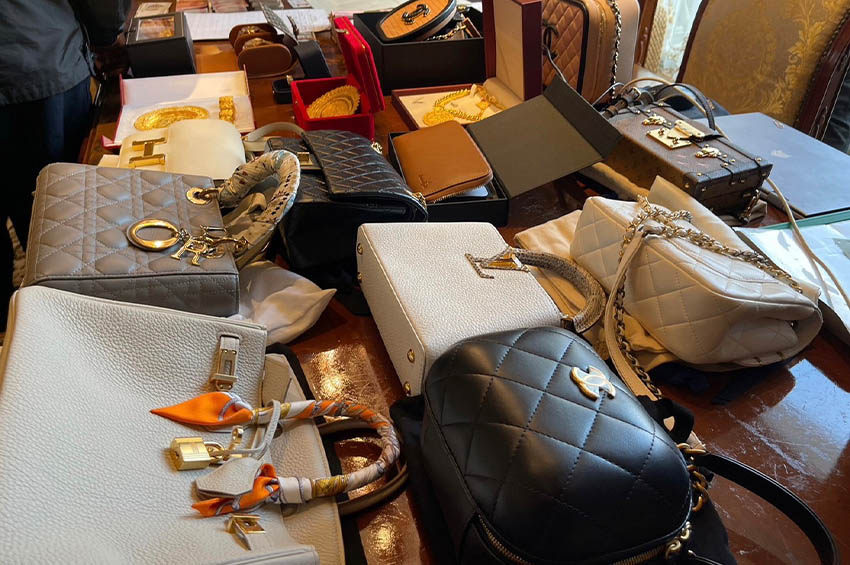 ทั้งนี้ได้ทำการตรวจยึดของกลาง อาทิ รถยนต์บุหรี่จีนและไวน์หนีภาษีจำนวนหนึ่ง ตู้เชฟ 3 ตู้ บุหรี่ไฟฟ้า อุปกรณ์เล่นไพ่นกกระจอก ตลอดจนกระเป๋าเสื้อผ้าแบรนด์เนมจำนวนหนึ่งไว้ตรวจสอบ